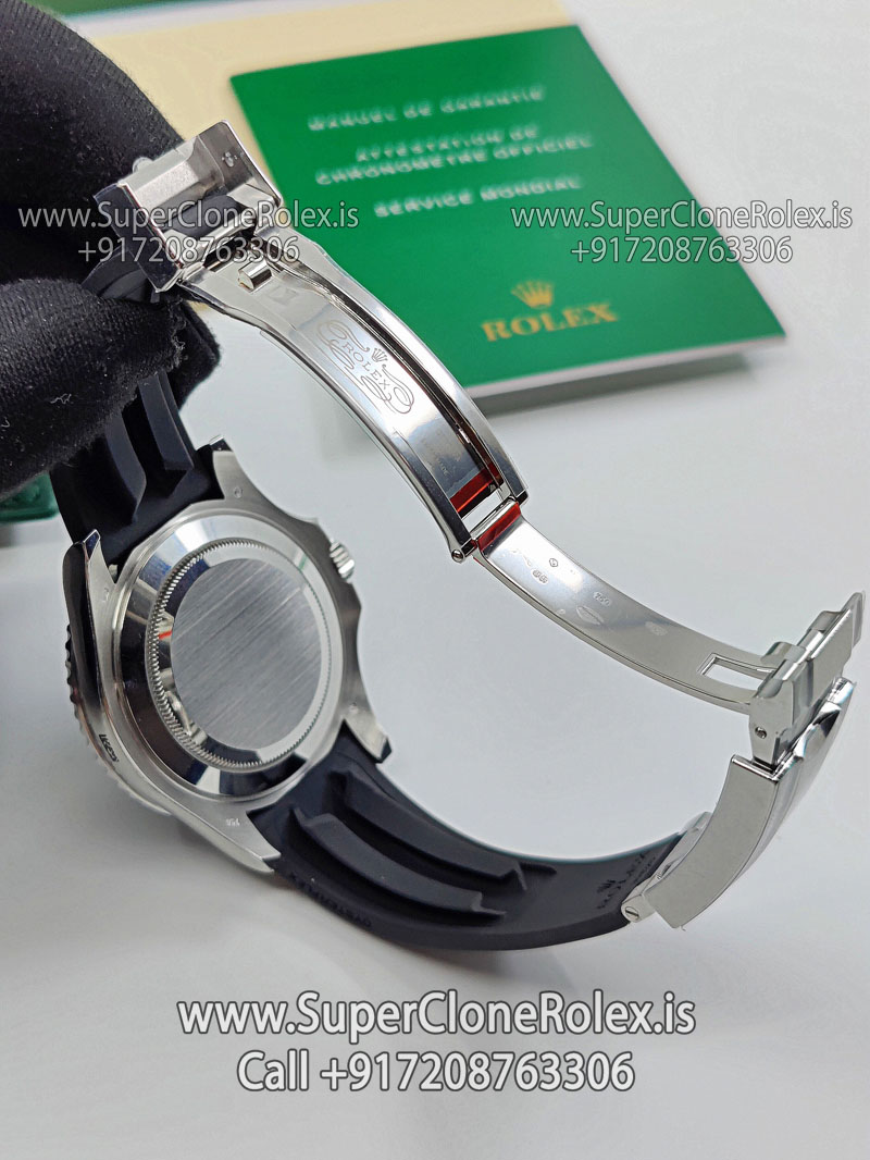 | BRACELET | – OysterFlex Rubber Strap – Rubber Strap Serial Number and ‘Rolex’ and ‘OysterFlex’ engravings exactly like Original – Folding Oysterlock safety clasp with Rolex Glidelock extension system |